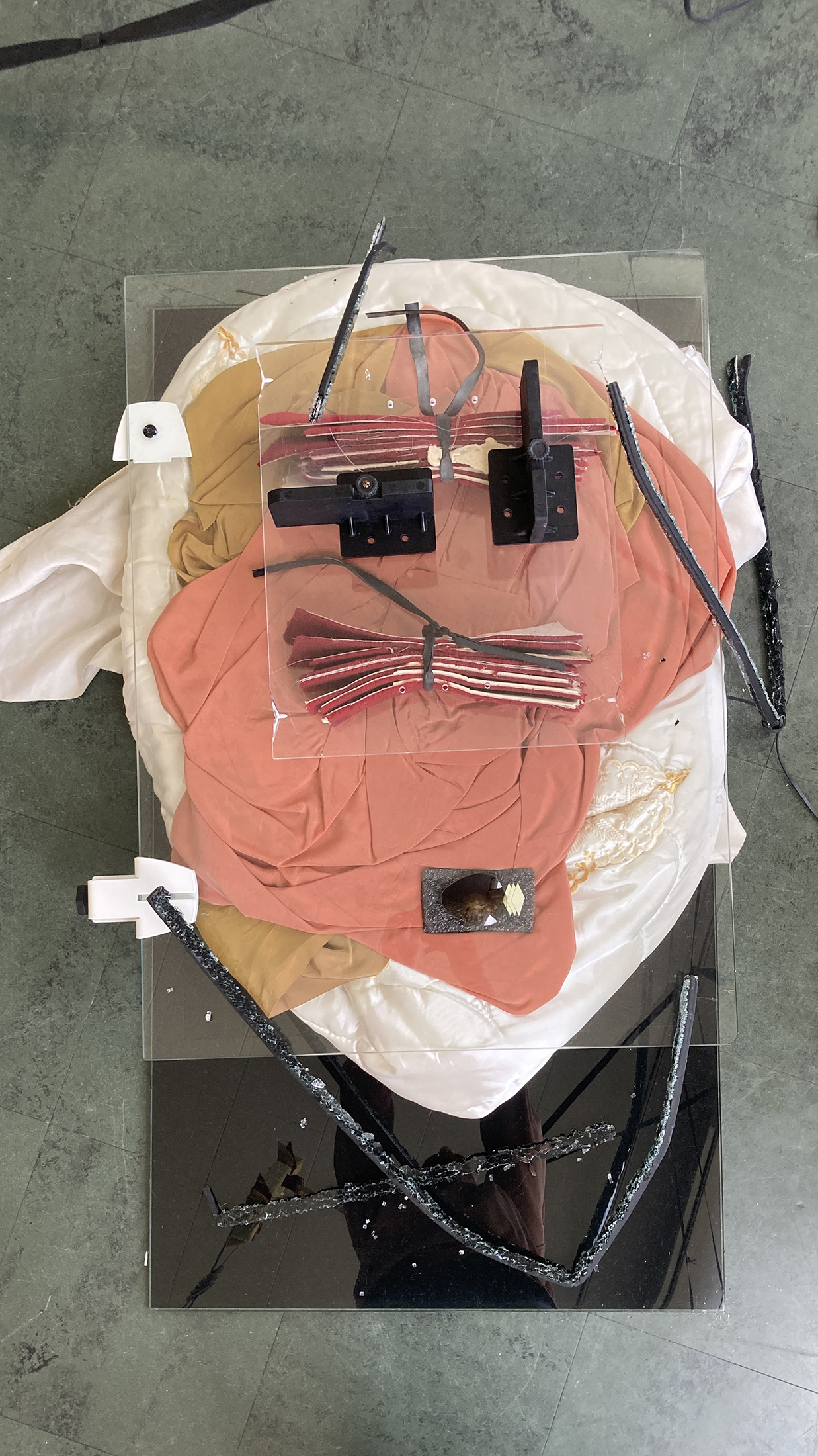 Found objects, 4-channel sound loop (7 min), exciters, amplifiers, smartphones